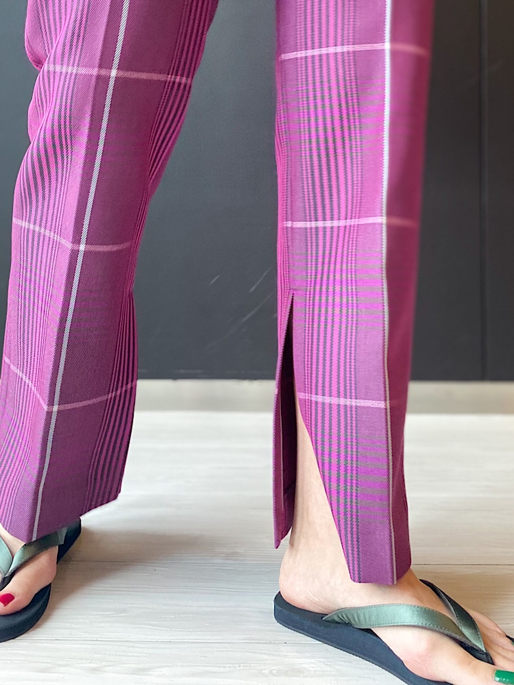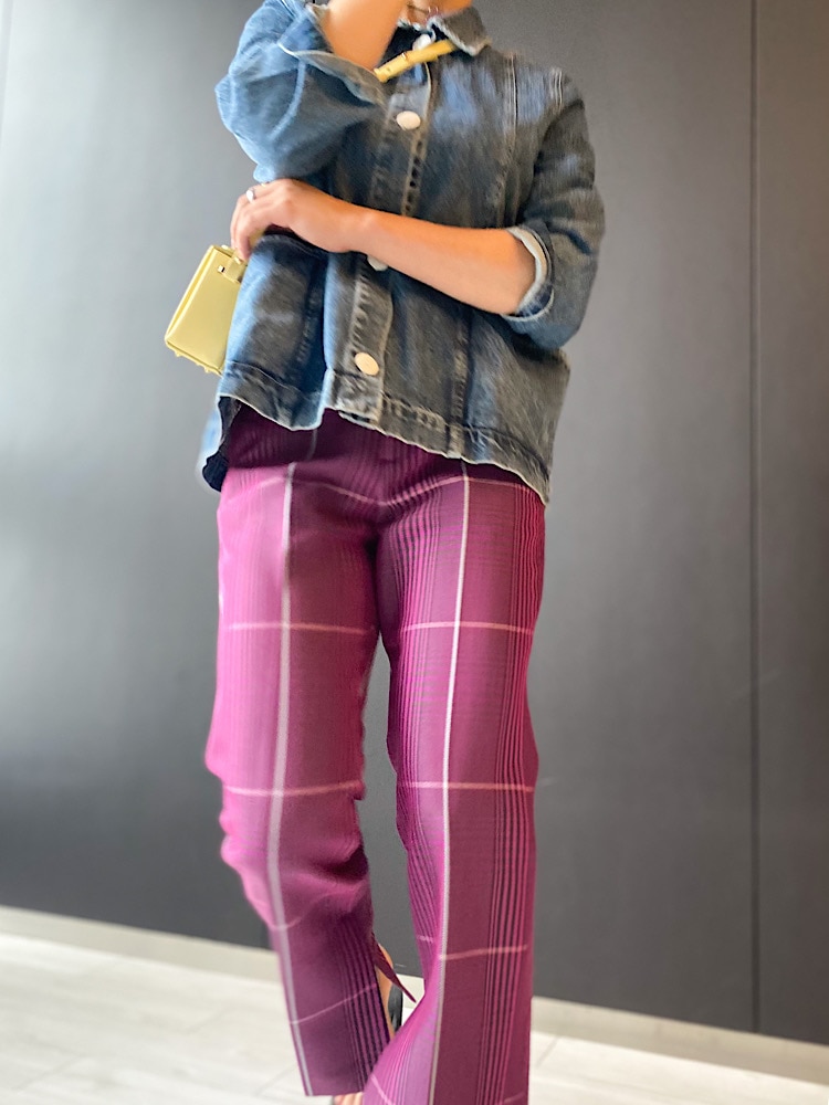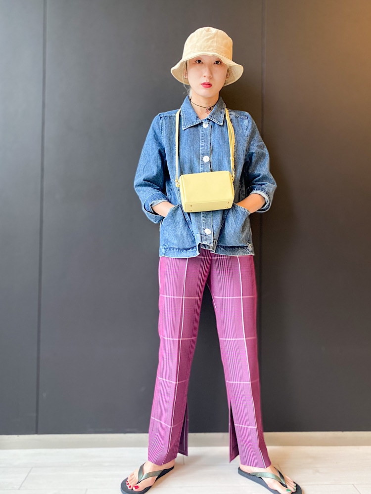 着こなしポイント: 裾のスリットを活かして、カラーソックスや柄ソックスをチラッと見せるのも可愛いです
