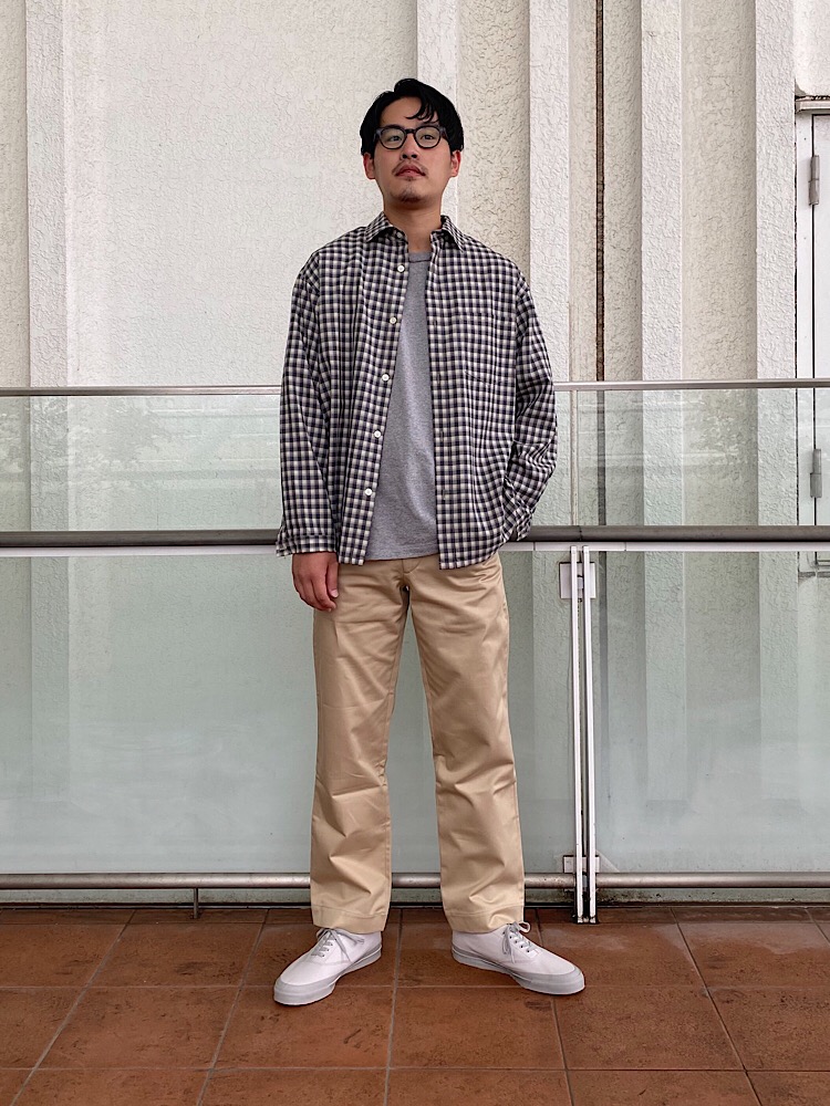綿100%の通年素材。武骨な生地感とシルエット。