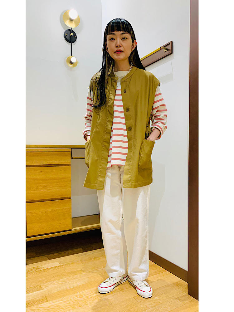 季節の変わり目に活躍する、ジレのコーディネートです。