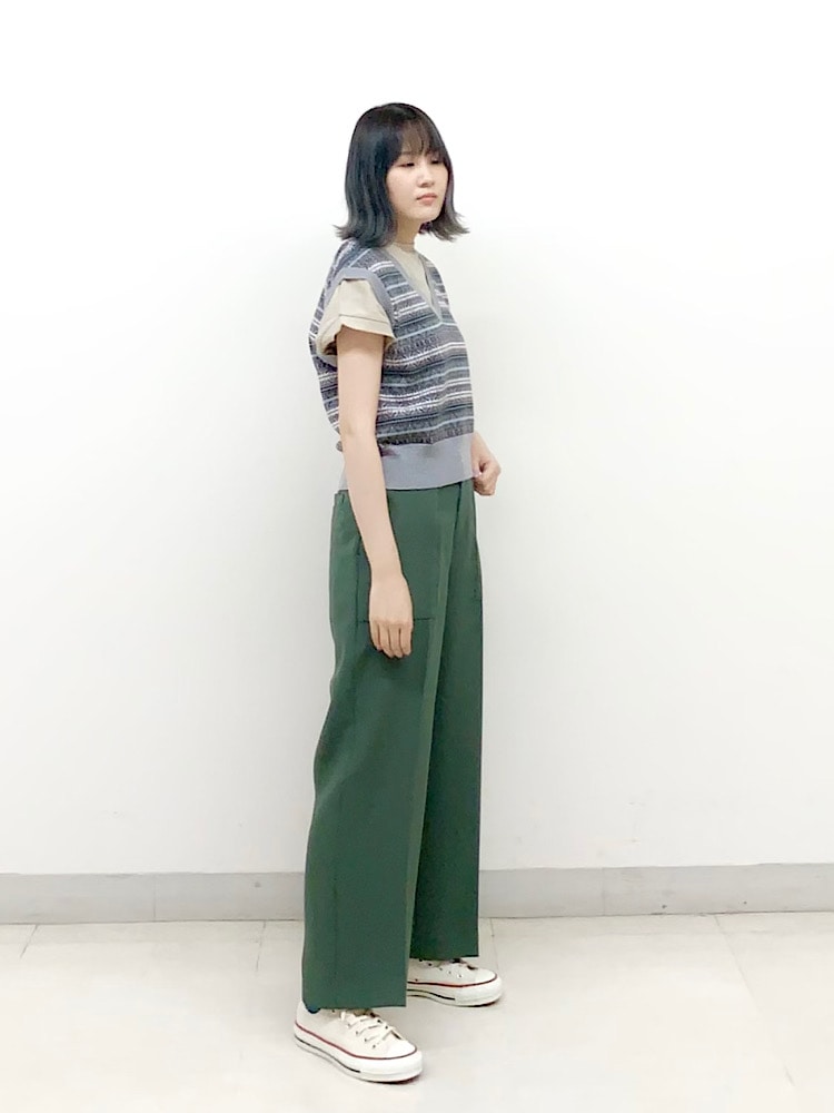 【サイズ感】ボディラインを拾わないゆとりがある。フラットシューズで丈感ちょうど良い
