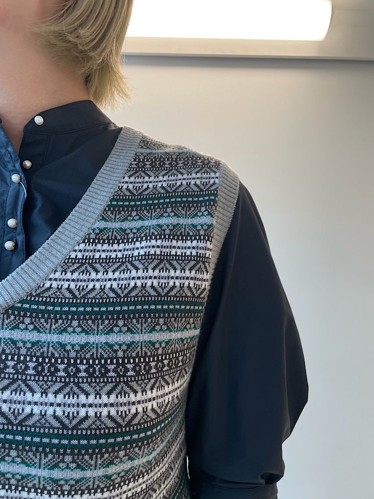 【サイズ感】ピッタリとしたサイズ感。シャツやカットソーなど薄手の物とレイヤードすると良い。