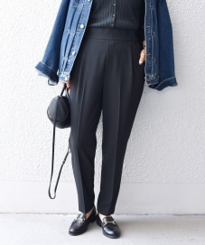 サイズ感:ジャストサイズ。ウエストはトップスイン出来る程よいゆとり、ヒップ、脚とラインを拾わず美脚効果絶大です。