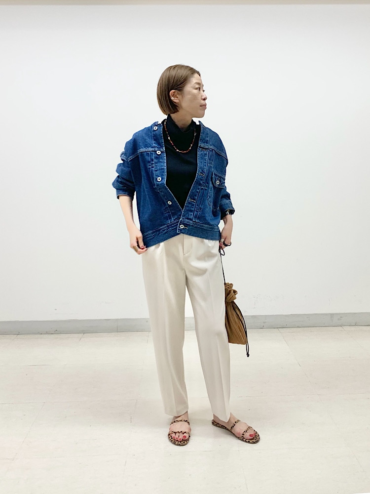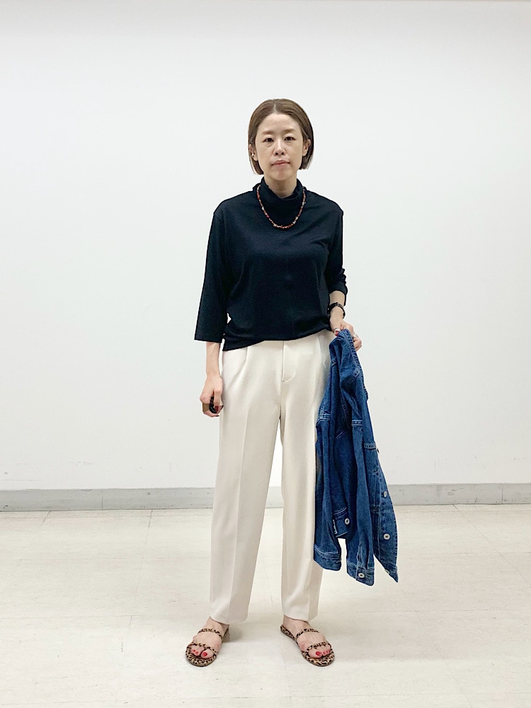 サイズ感:程よいゆとり。ボディラインを拾わない程度で、オーバーサイズすぎないので、羽織物も着やすい。