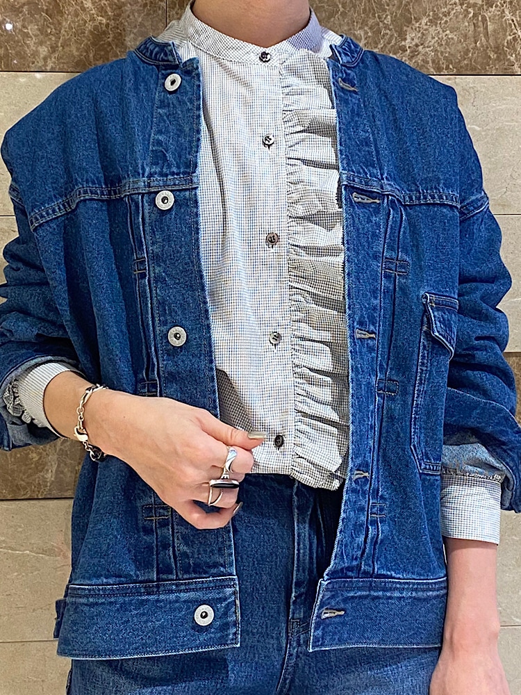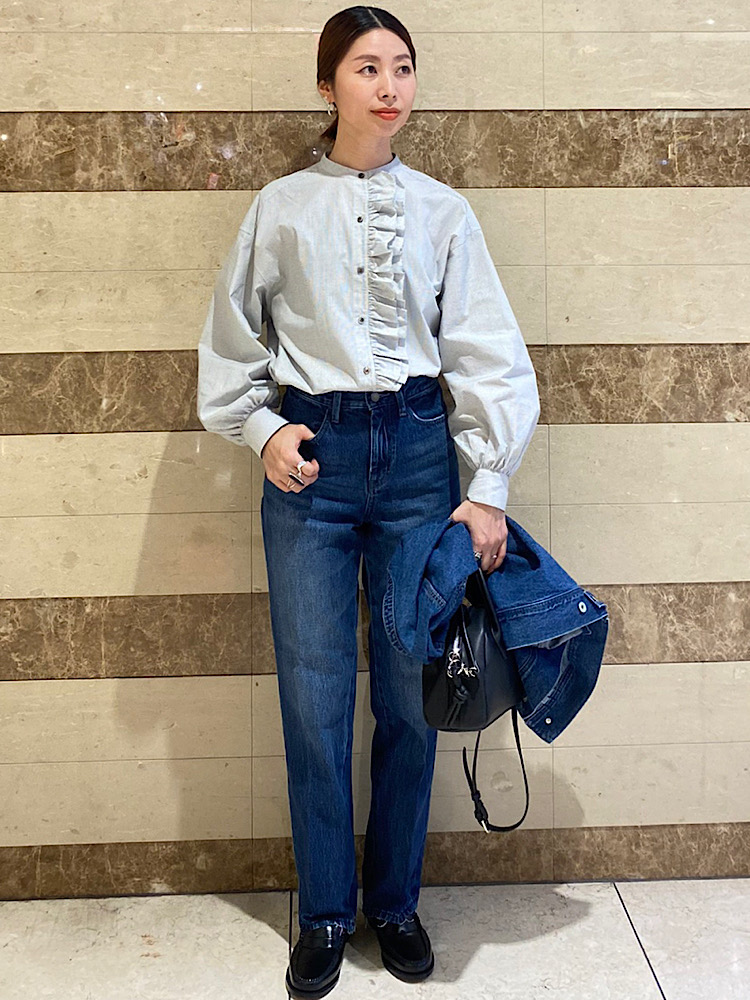 サイズ感:ジャストサイズ。お袖にボリュームがありますが身幅はそこまで大きく無いのでスッキリ着て頂けます。