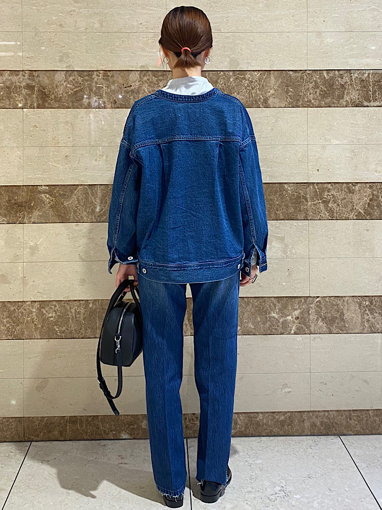 サイズ感:オーバーサイズですが、着丈が長過ぎない為コンパクトなので合わせるボトムスを選びません。