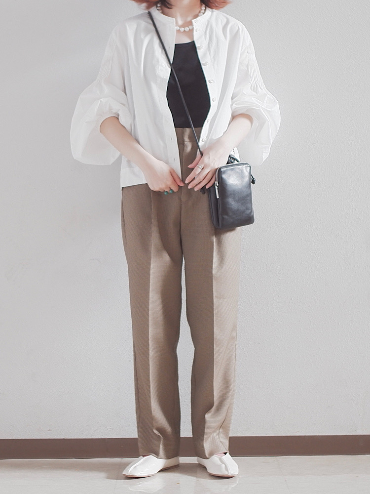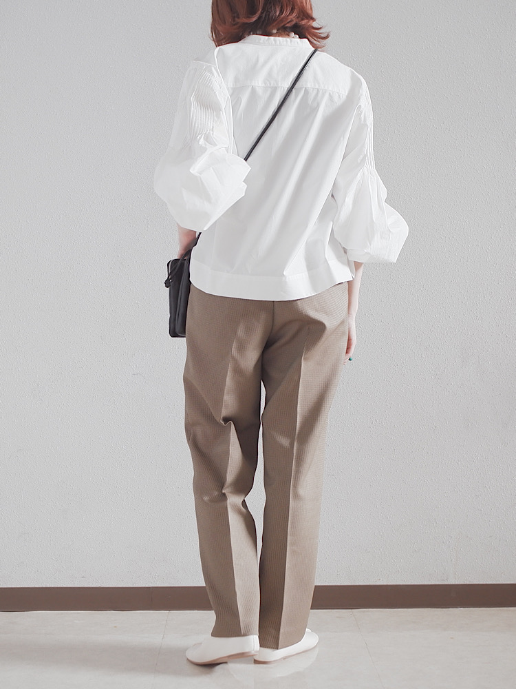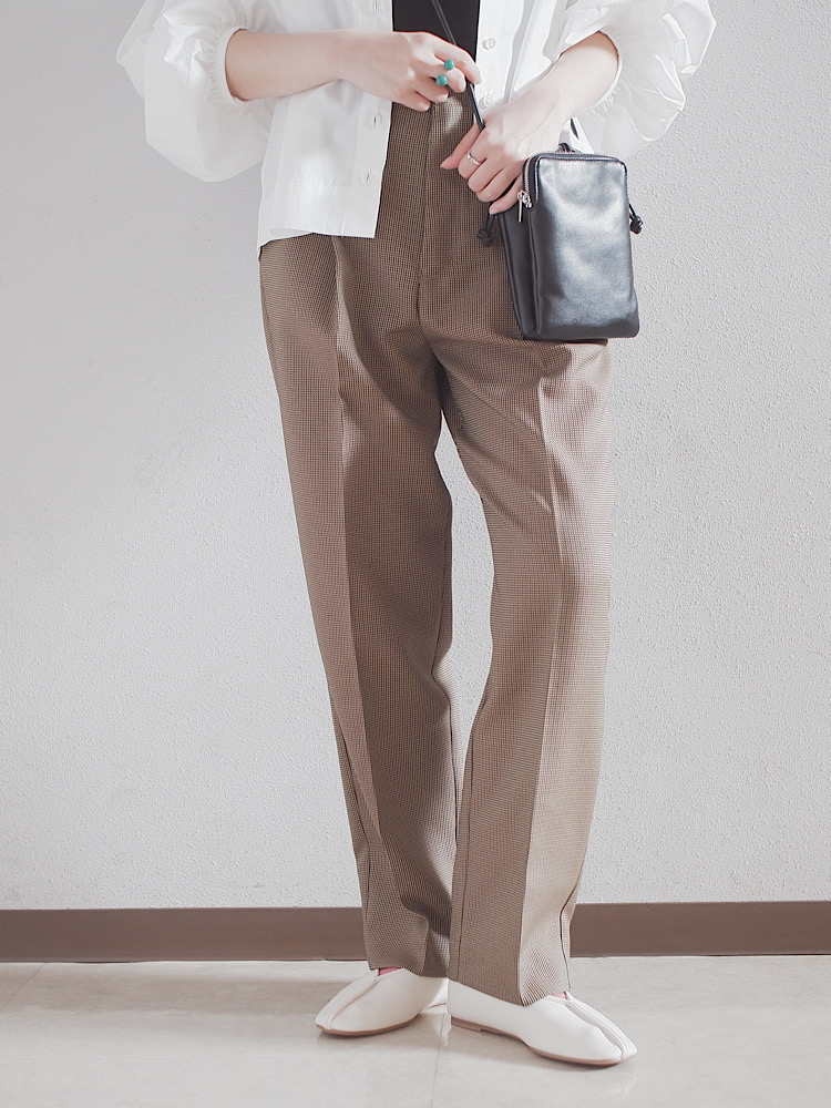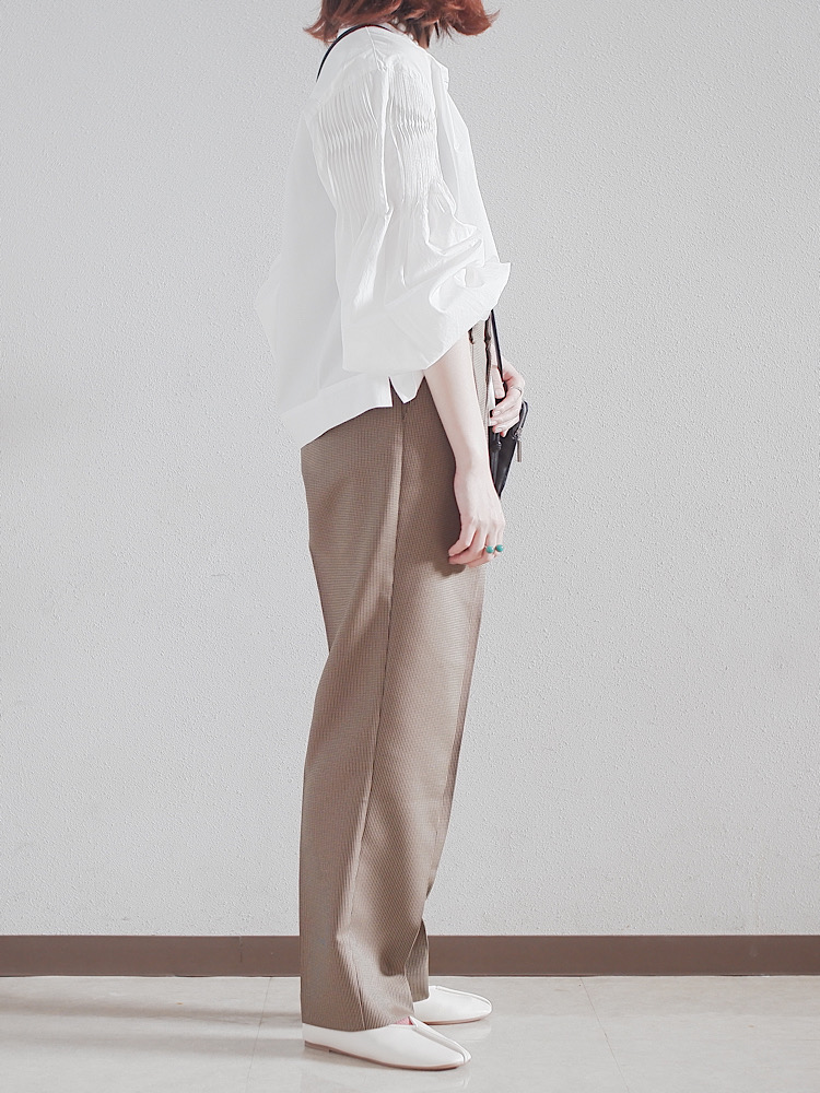 ウエストもシルエットもスッキリなのでオンオフ兼用で着用できます◎
