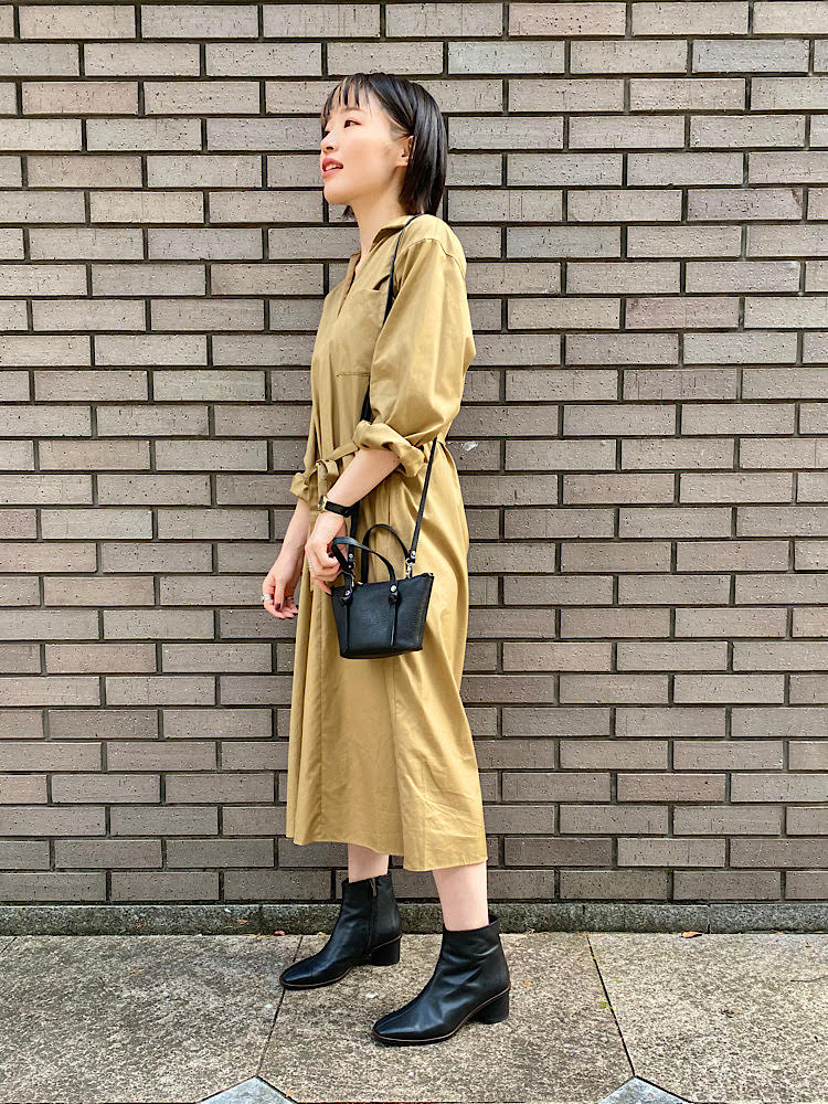 秋仕様のシャツワンピースコーデに