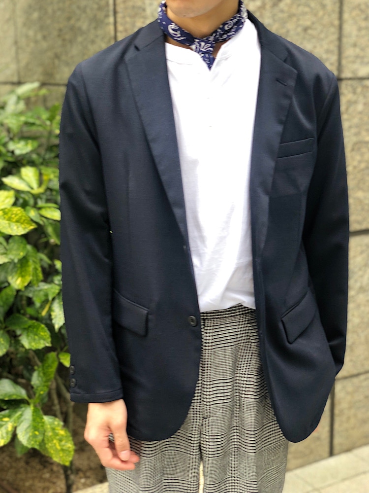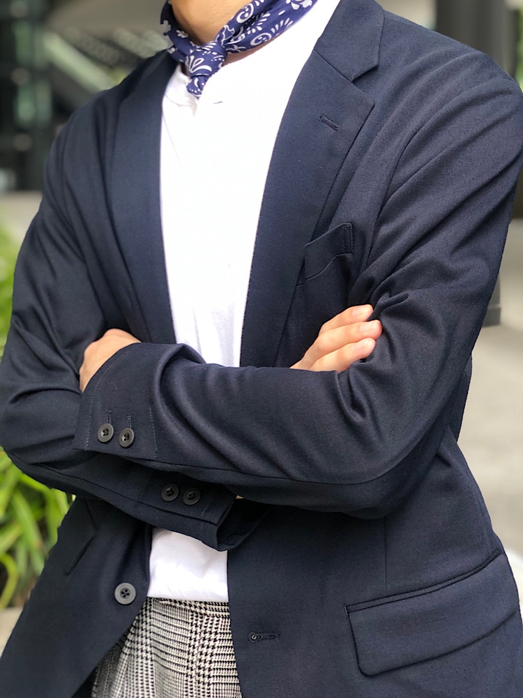 サイズ感:ジャストサイズ。ストレッチが効いており、非常に軽いながらも重厚感のあるジャケットです!
