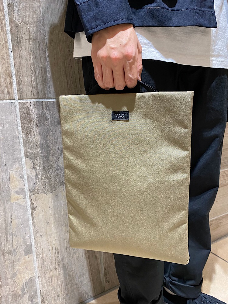 【素材感・着心地】汚れにくい素材になります。タブレットをいれるのに適したつくりですが、ちょっとした小物を入れることもできます。