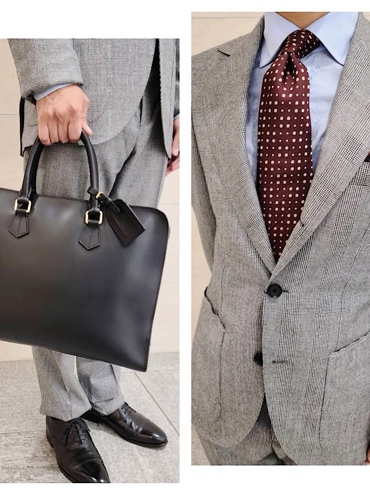 【素材感・着心地】スラックスはクラシックに着やすいワンプリーツ仕様です。程良い起毛感なので衣替えに最適です。