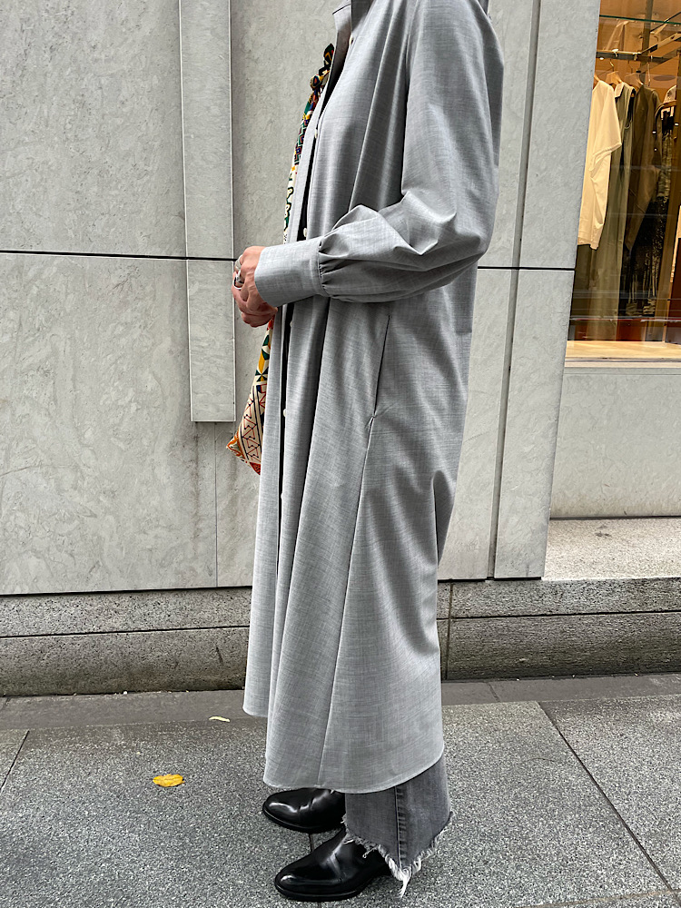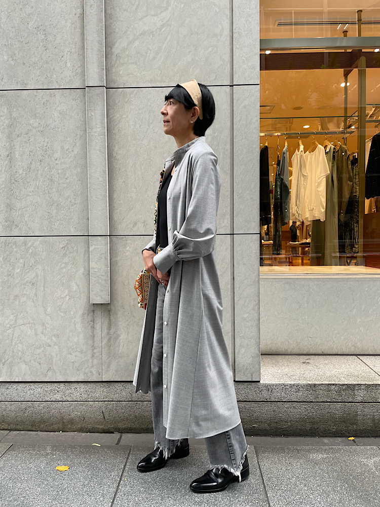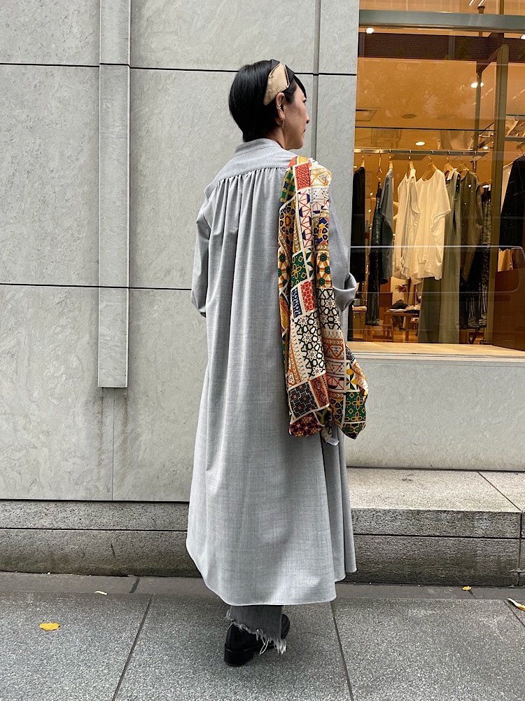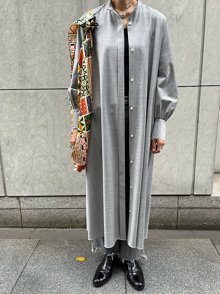 着用アイテム: ウール素材前開きワンピースandシルクスカーフ