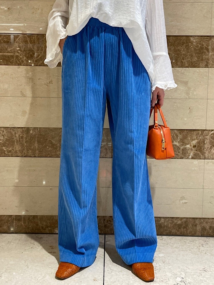 鮮やかな空色のコーデュロイを