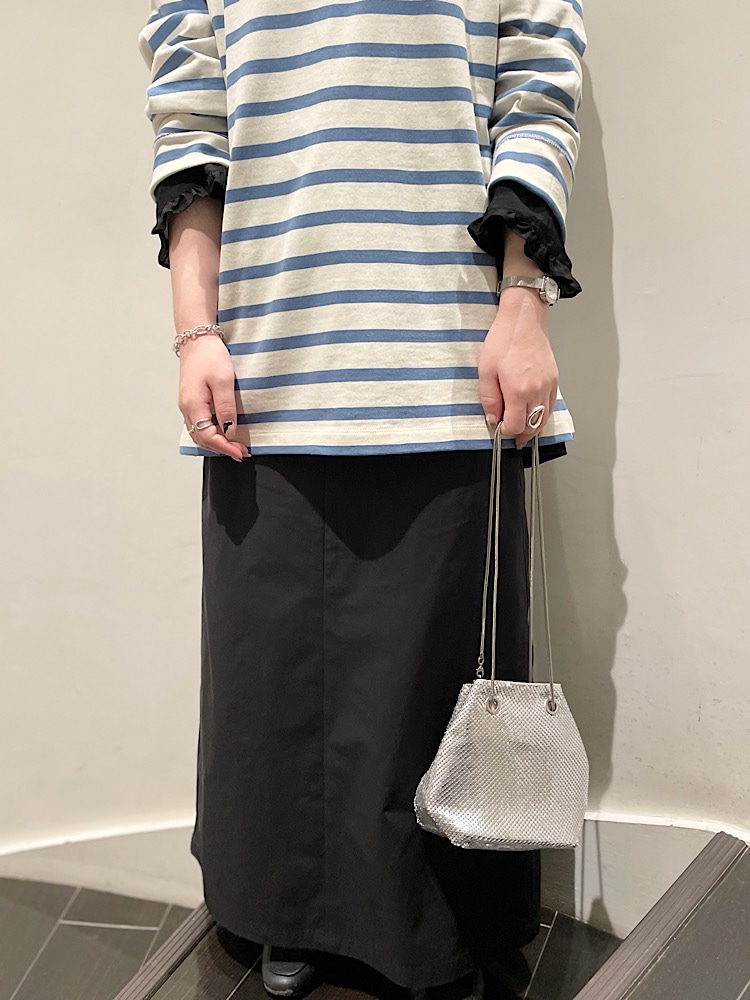 商品紹介:シルエットが広がりすぎず、タイトすぎず程よい為トップスがゆったりしたシルエットでもインしてスッキリしたシルエットでも相性がいいです。