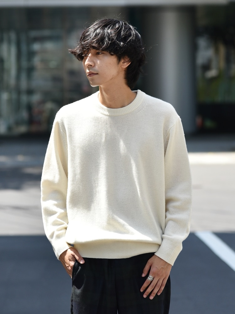 スーパー180'Sクラスのラムウール素材のクルーネックニット