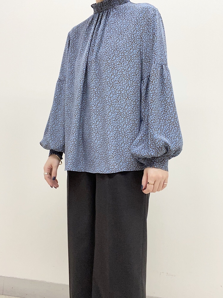 着用アイテム:ギャザーネックプリントブラウス
