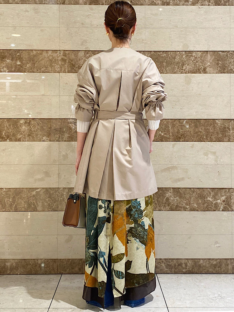 素材感・着心地:表地はシルクのようなポリエステルで裏地は綿が入っており着心地良く、裾から見える素材感の違いがお洒落です。