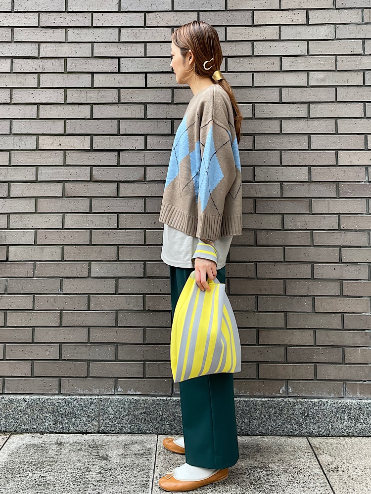 素材感・着心地:ウールの柔らかい素材感。比較的薄手で軽く、身幅もゆったりしている為、中にカットソーやシャツを重ねて着用しても可愛いです