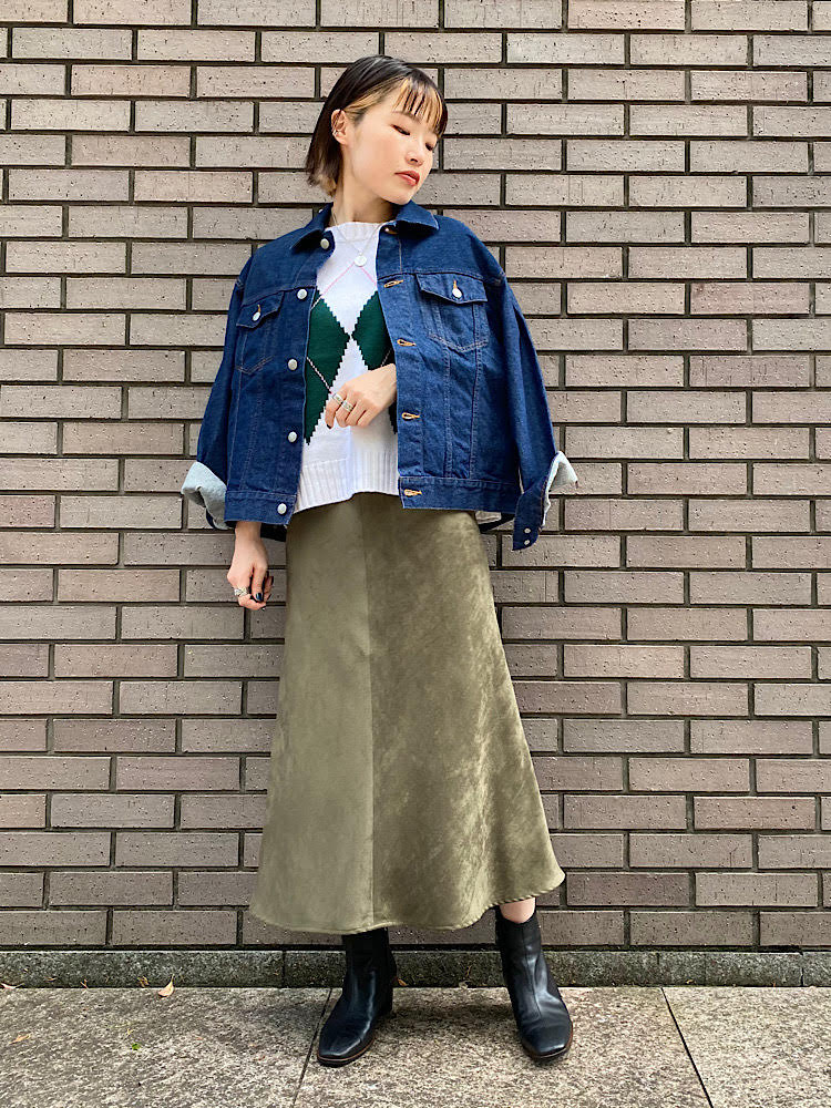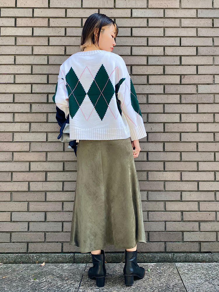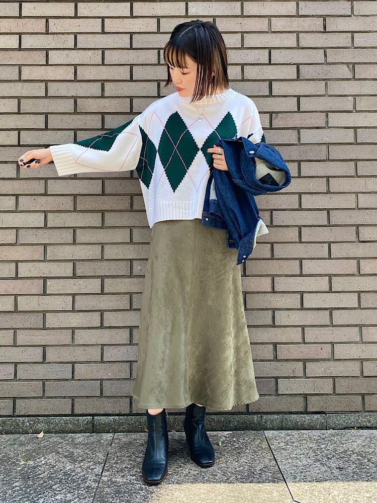 アーガイル柄が大きくあしらわれており一枚で様になります