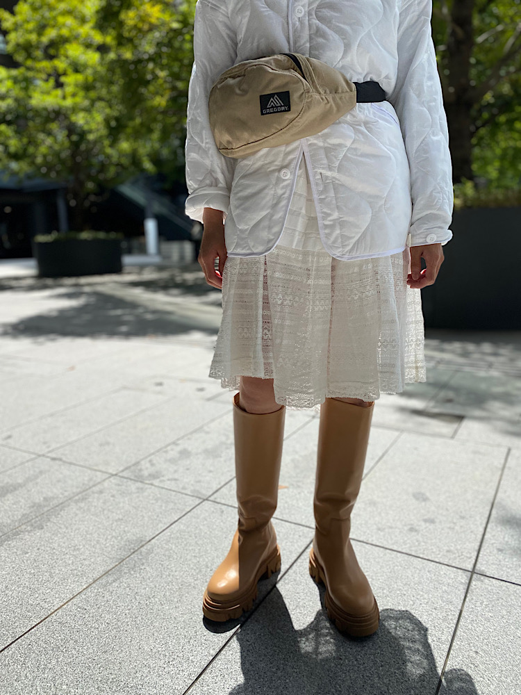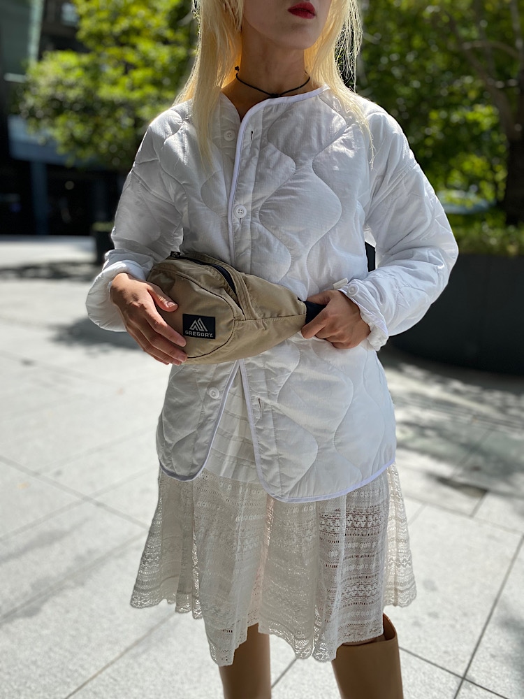 着こなしポイント: 写真の様にウエストポーチやベルトでウエストマークすると、トップスとして着て頂けます