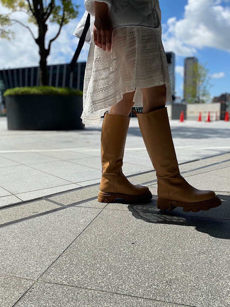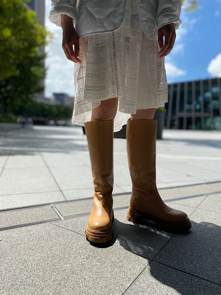 着こなしポイント: マキシ丈のスカートをあえてミニスカートに変更してみました
