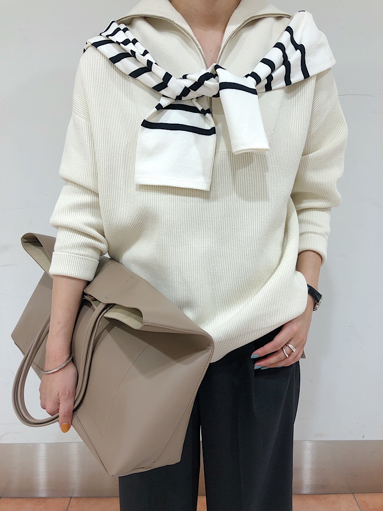 肌触りがよく、適度な厚み。アーム周りもゆとりがあるため、重ね着もしやすい。