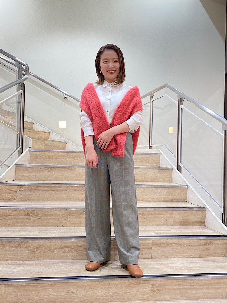 ・素材感:ポリエステル63%、レーヨン32%、ポリウレタン5%です。秋から冬まで着ていただける素材です。