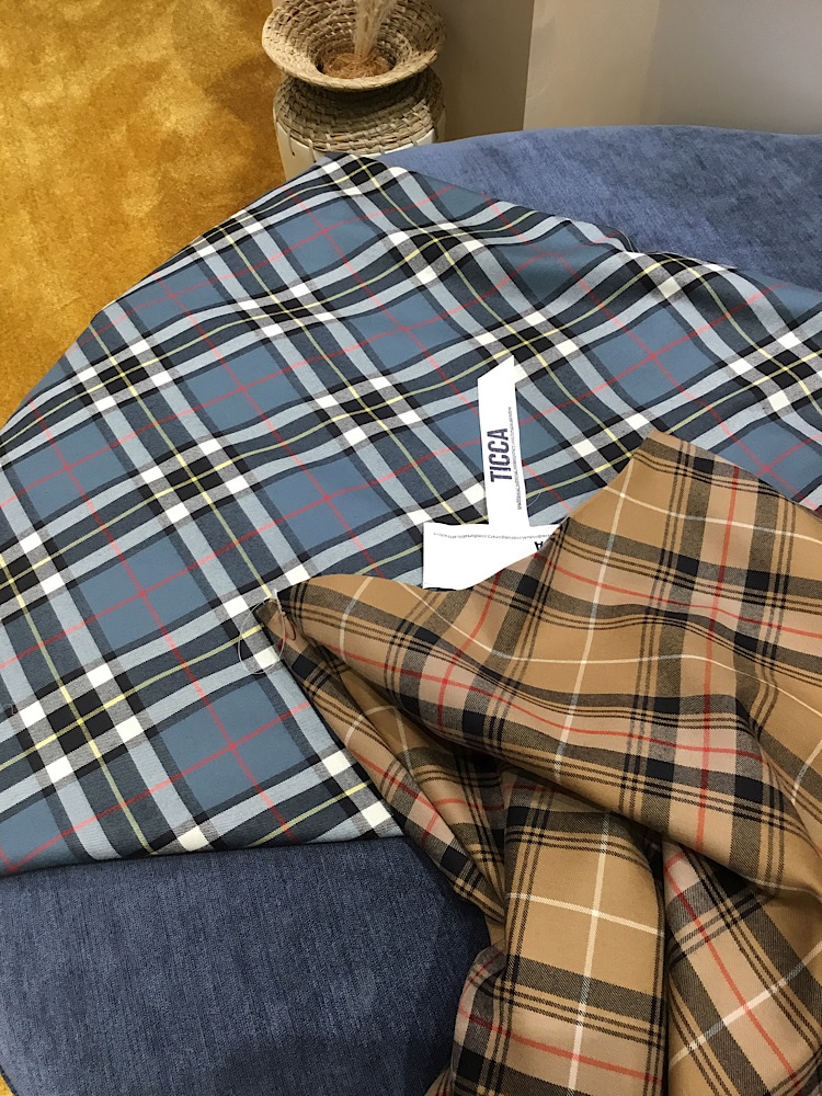 ブルーグレーベースに赤、黒、黄色が入った配色でクラシックな印象でも、