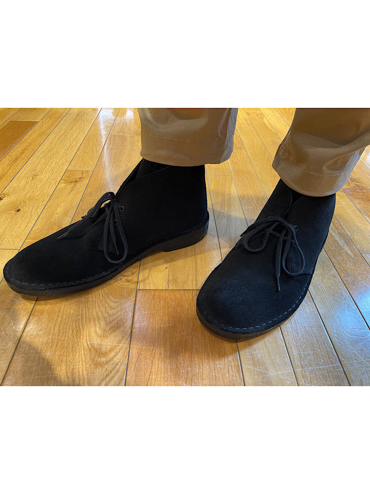 素材感・着用感:足を優しく包み込むような履き心地で、ワラビーと並ぶクラークスの定番シューズ。