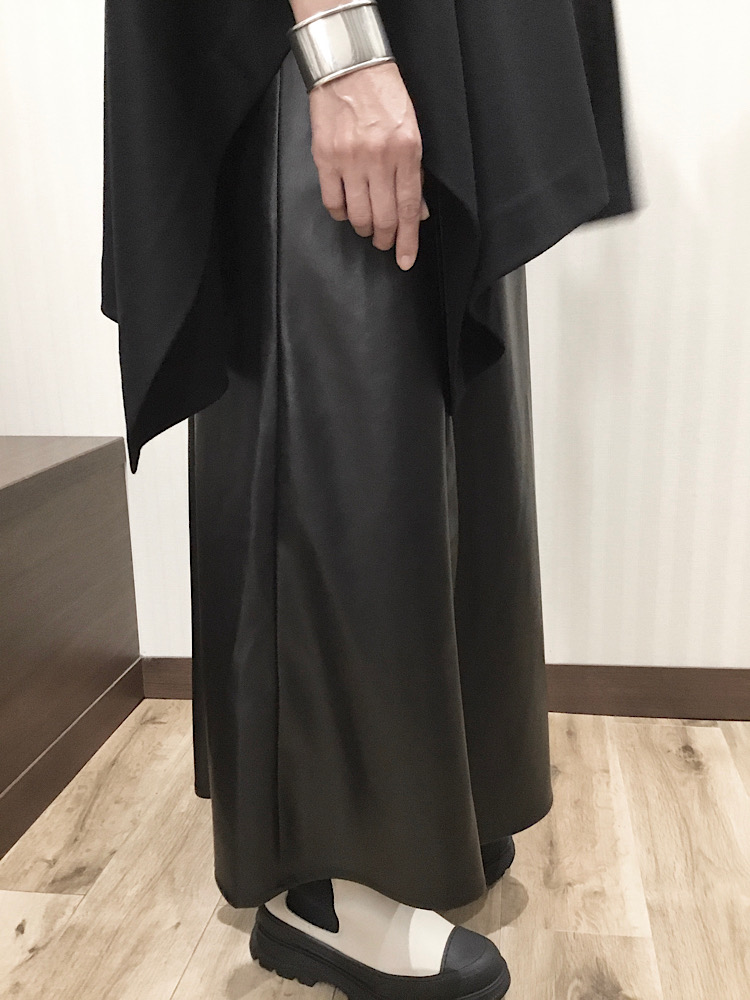 ◆着用アイテム:〈手洗い可能〉フェイクレザーフレアスカート