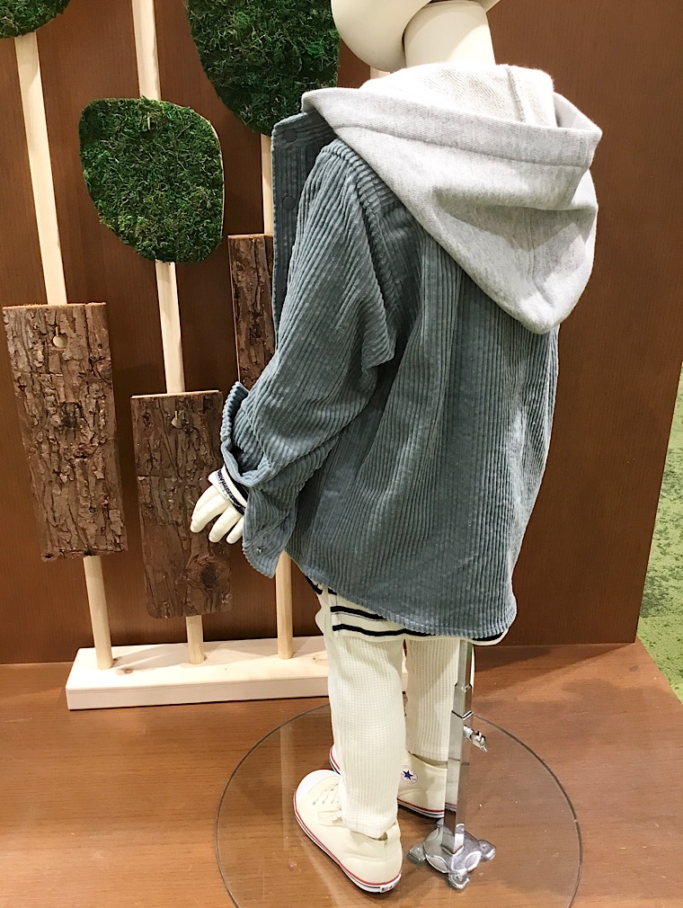 トップスにワンサイズ大きいサイズを合わせて オーバーに着るのもかわいいですよ♪ シャツはフードが取り外し可能です。 ボディ90cm 着用サイズ100cm