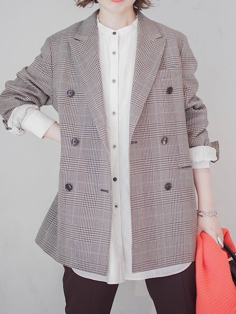 ◆ Navy Labelブラウンチェック ダブルジャケット