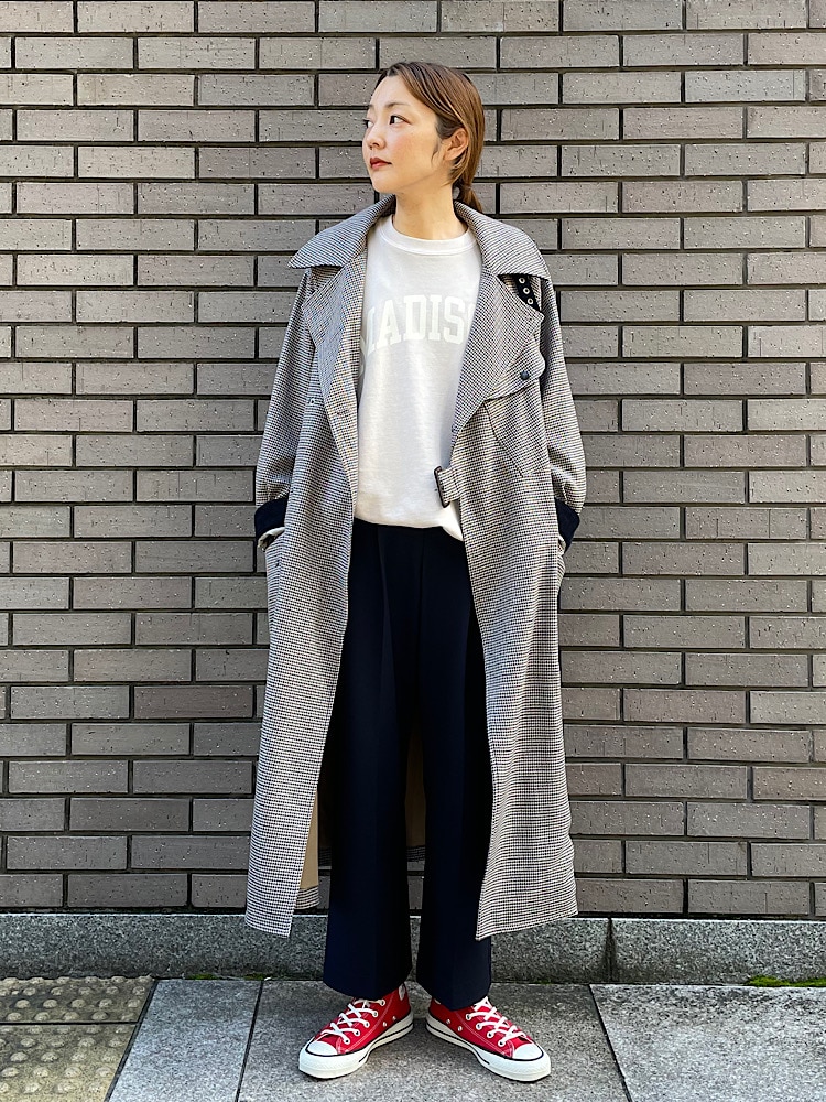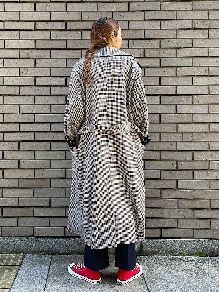 素材感・着心地:ポリエステルでやや肉厚な素材感。袖裏、背裏にも全て裏地が付いおり着脱がスムーズに行えます。肩が落ちるシルエットになっており、袖にボリュームもある為、厚手のニットやスウェットを重ねてもスッキリ着用できます