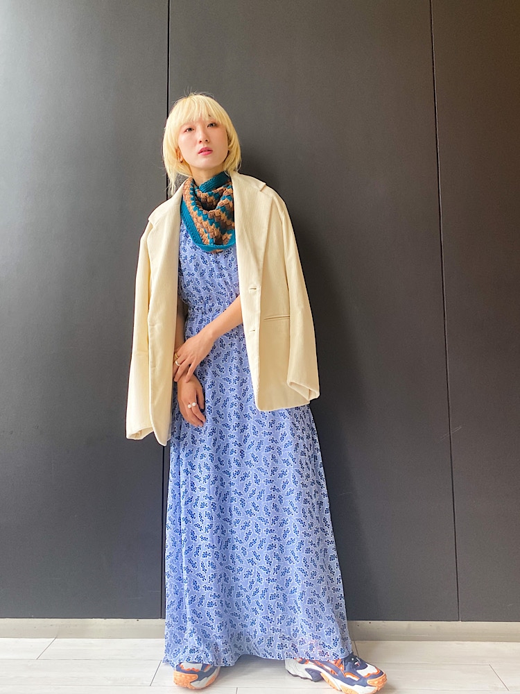 着こなしポイント: インナーをレイヤードして頂くと、冬まで着用できます