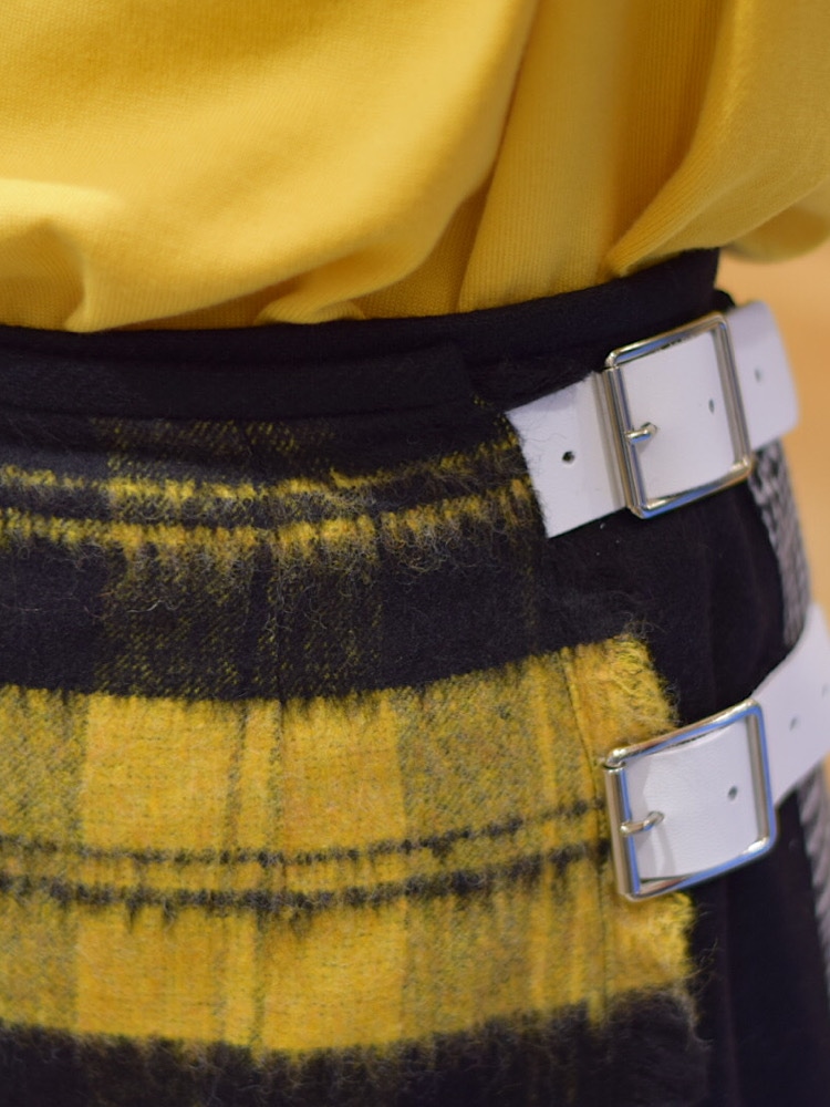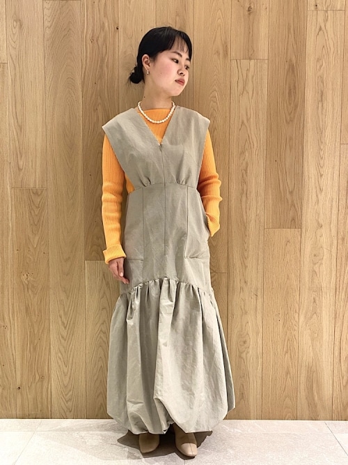 サイズ感:丈は短めなので、ブーツやパンツとレイヤードしても楽しめる。