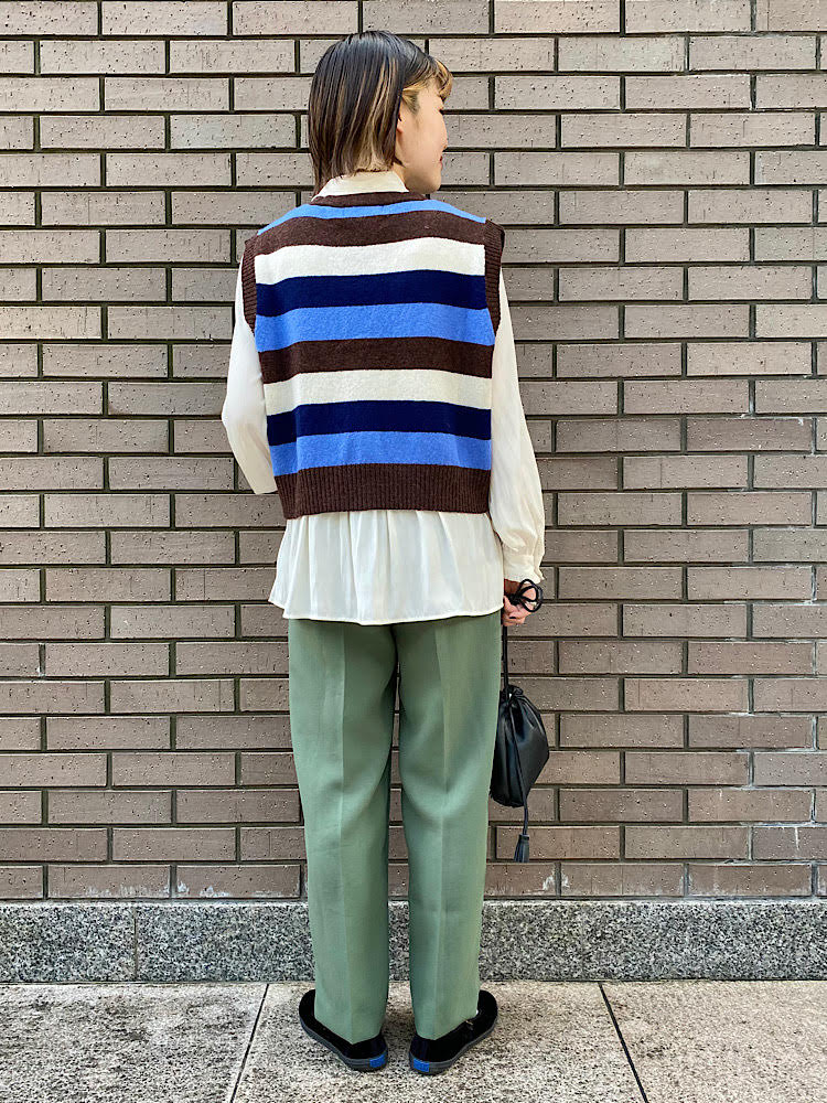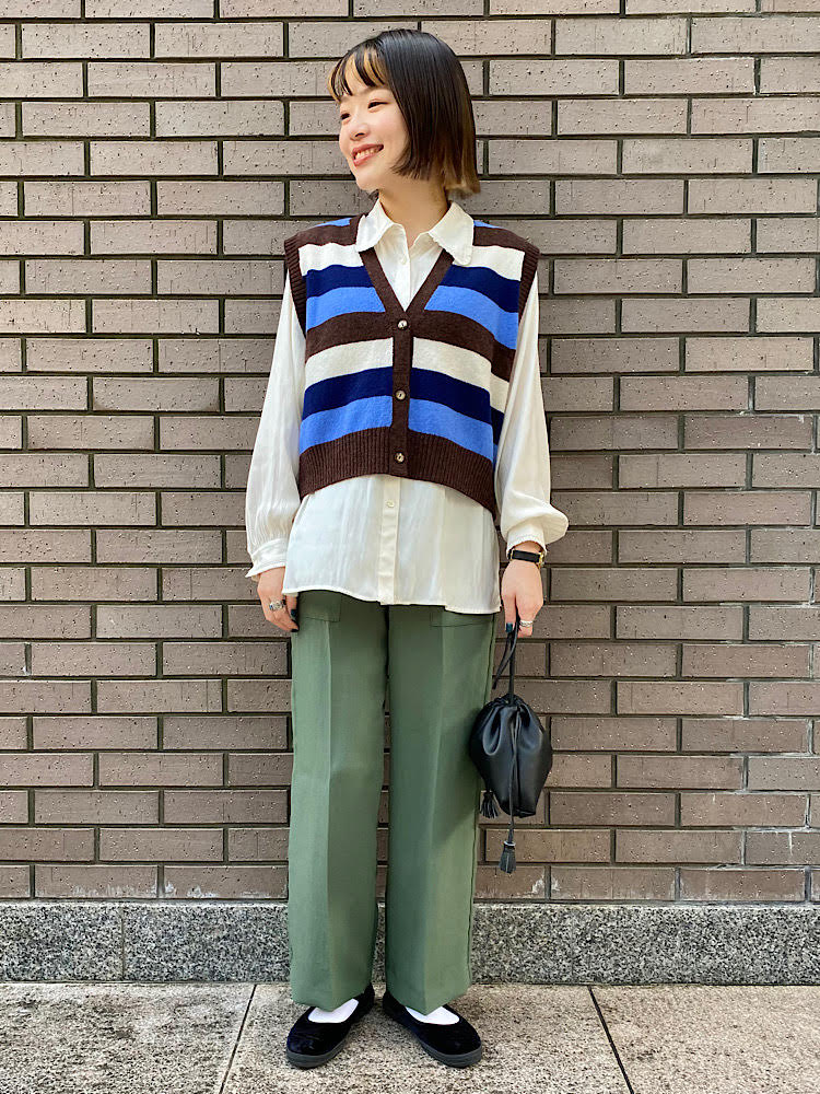 やや大きめの襟が特徴的で、お手持ちのニット等を重ねて
