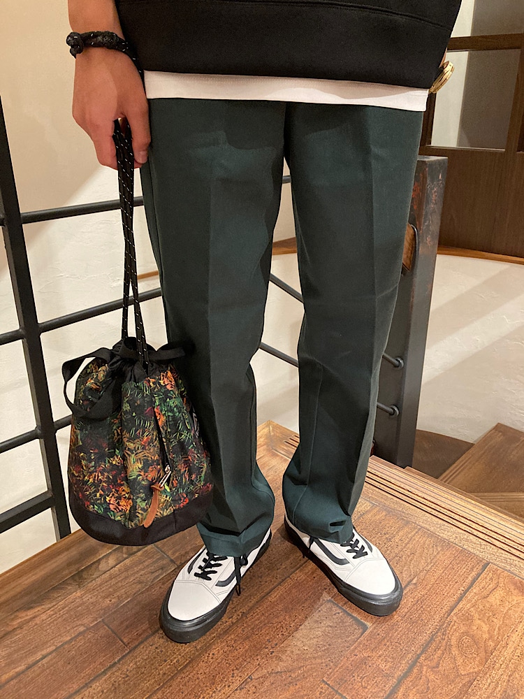 ワークパンツらしいゆとりがありつつ、テーパードが効いている。