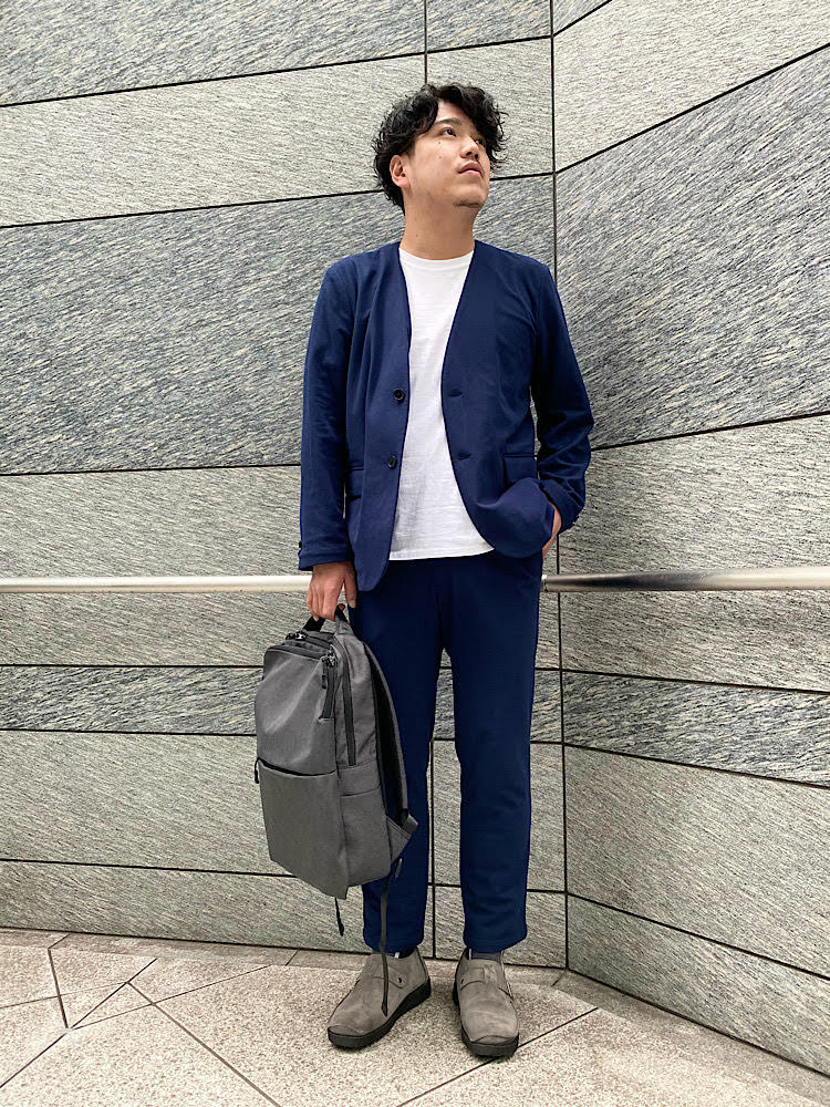 サイズ感:JKT:適度にゆとりがあり中肉くらいの生地感なら着込めます。PT:全体的にジャストです。丈感もアンクル丈でスニーカーでも格好いいです。