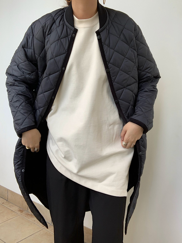 着心地:身幅、腕周りゆったりしており、中に厚手なニットやスウェットも着用可能。長さもしっかりあり、パンツ、スカート共に合わせて頂きやすいデザイン。