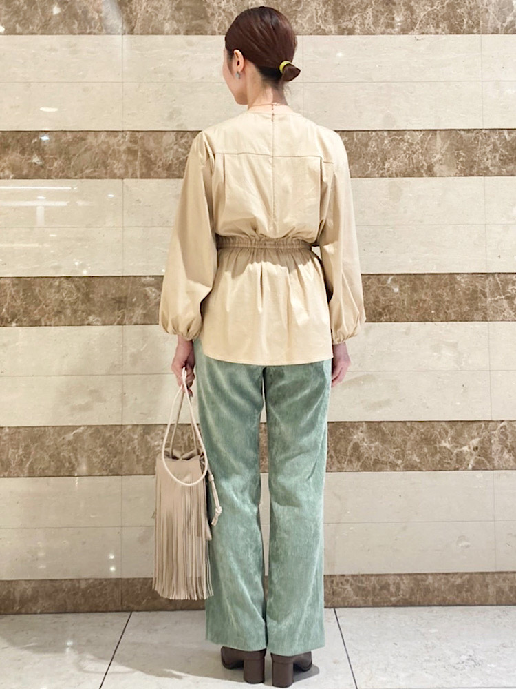 サイズ感:ウエストは少し余裕ありますがトップスインしやすいサイズ感。着丈はブーツのヒールが見えるくらいで長めが苦手な方にぴったりです。