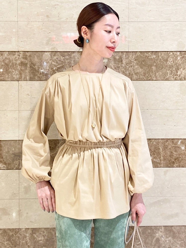 サイズ感:袖周りにゆとりがありますがウエストのゴムがしっかり止まるのでメリハリが出ます。お袖は長過ぎず着丈はヒップが隠れるくらいです。