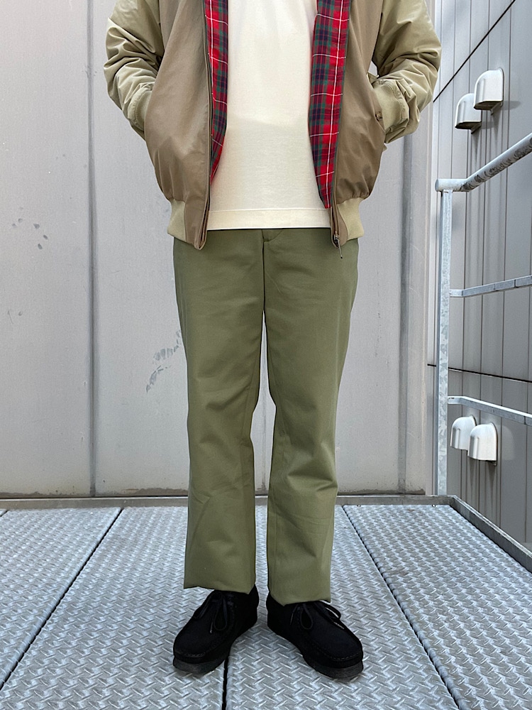 素材感・着用感:チノパンでありながらドレスパンツの様な丁寧さがあり丈夫さも備えています。