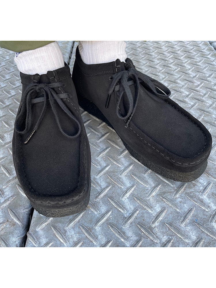 素材感・着用感:足を優しく包み込むような履き心地で、デザートブーツと並ぶクラークスの定番シューズです。