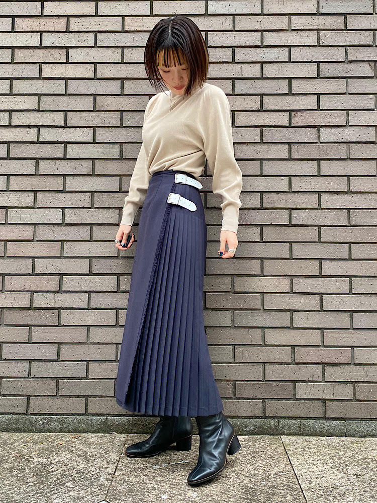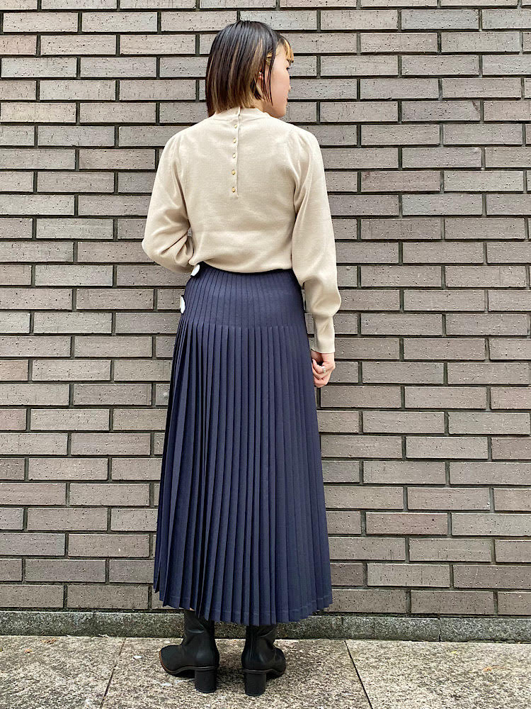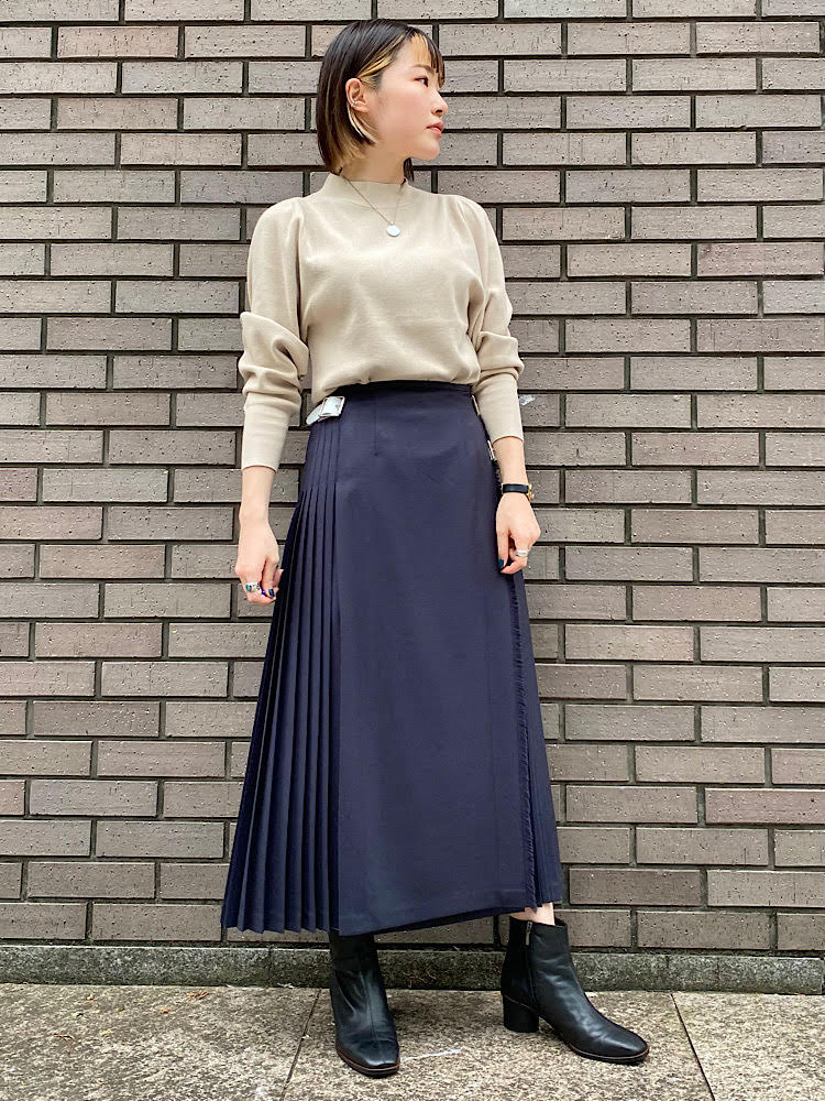 すっきりしたシルエットなのでボリュームのあるニットとも