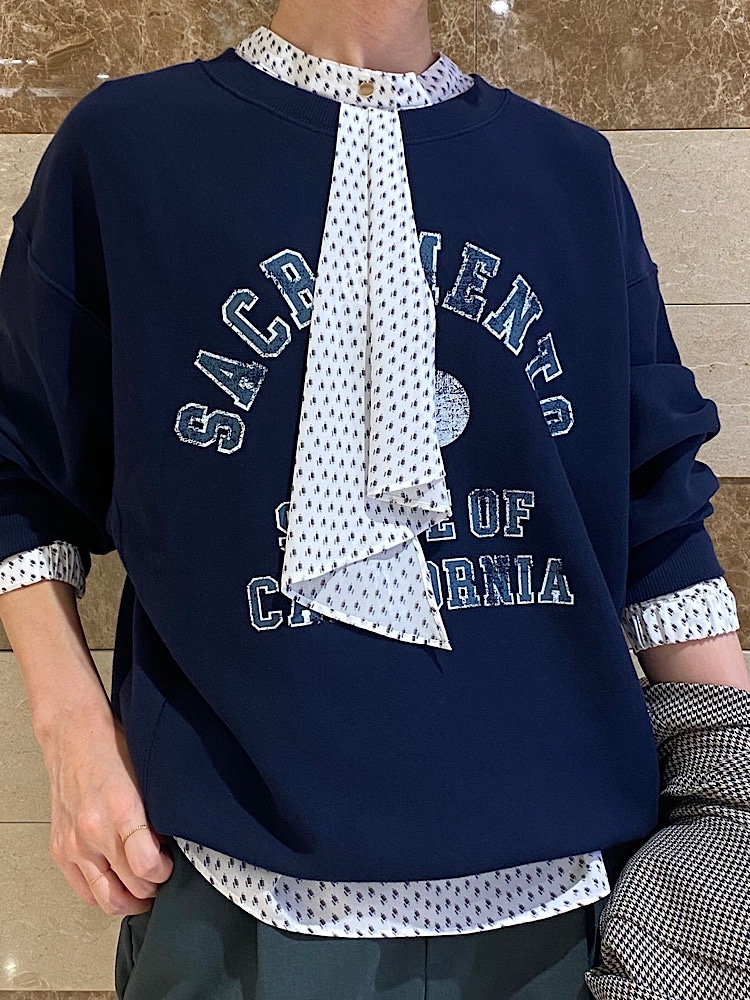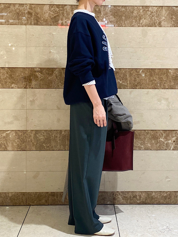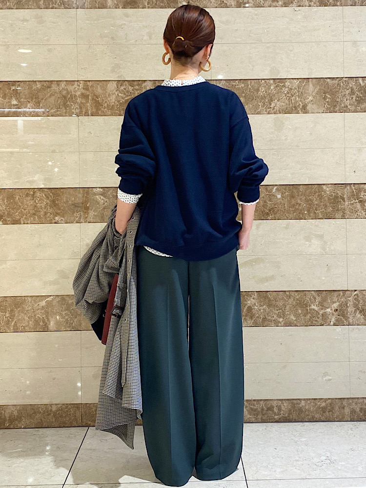 サイズ感:着丈は長過ぎないですが、全体的にゆとりがあり重ね着がしやすいです。首元が少し広めなので女性らしく着て頂けます。