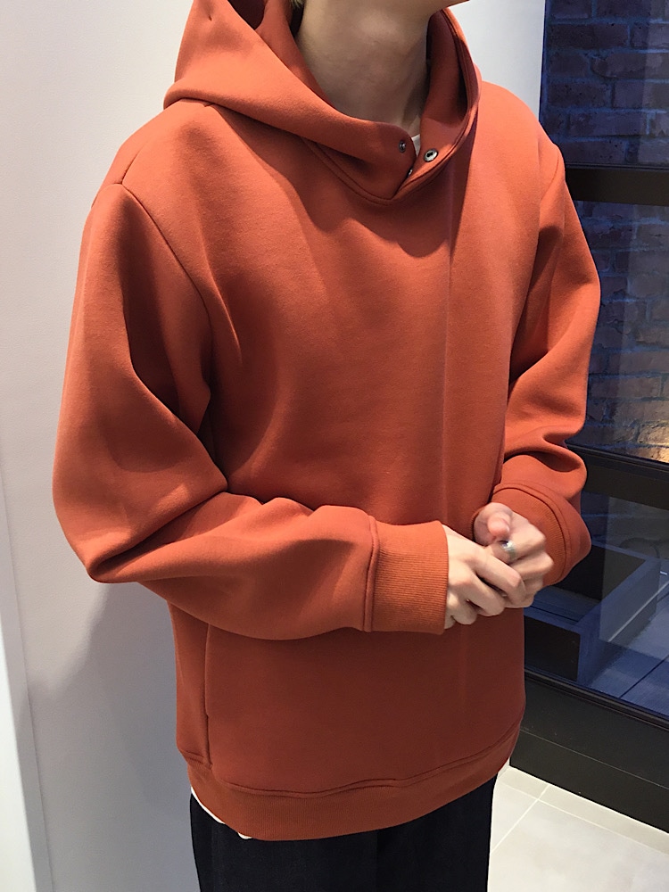 秋色のパーカーを使ったカジュアルスタイルです。今っぽく全体的に緩めなコーディネートです。