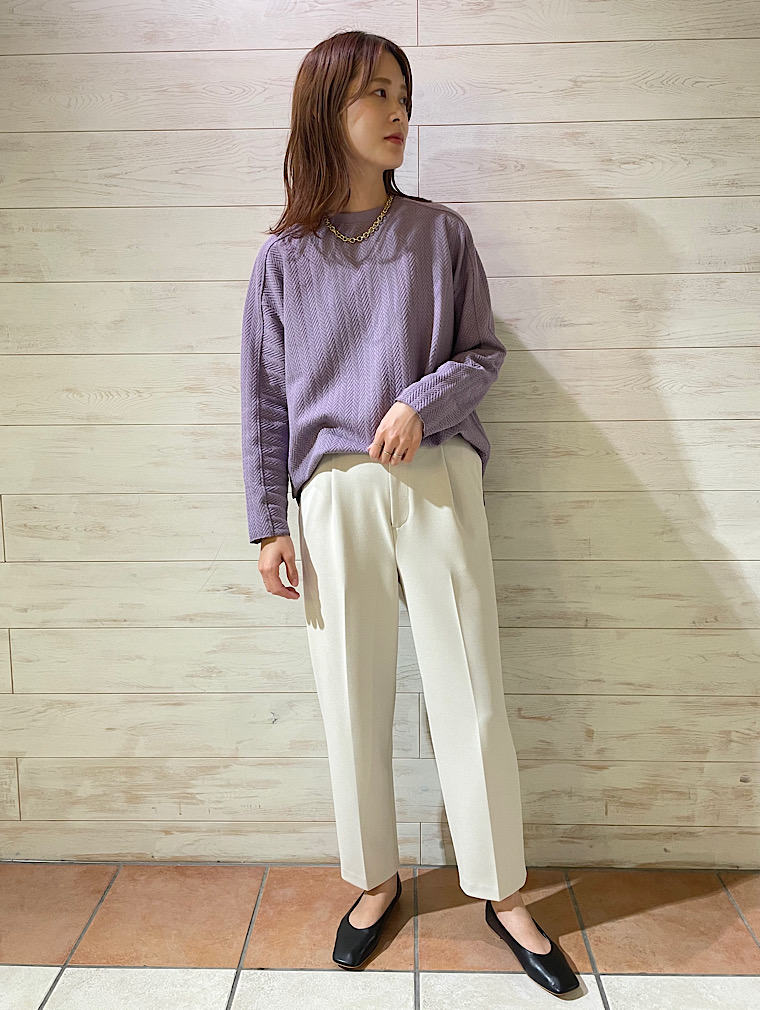 【素材感・着心地】ポリエステルでシワになりづらく、シャリ感のある生地です。ストレッチがかなり効いているので履き心地抜群です!!!