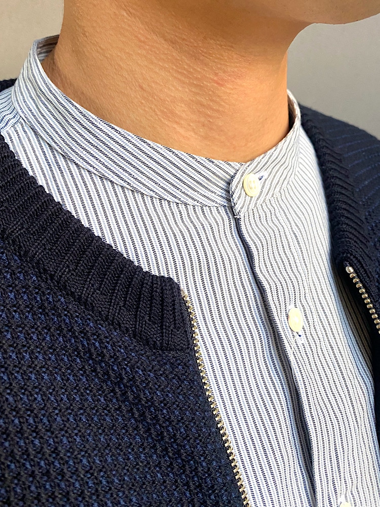 メンズではあまり見られなかったニット羽織となっております。ボリュームはありますが、アクリル混により軽さがあるので着心地が良いです。