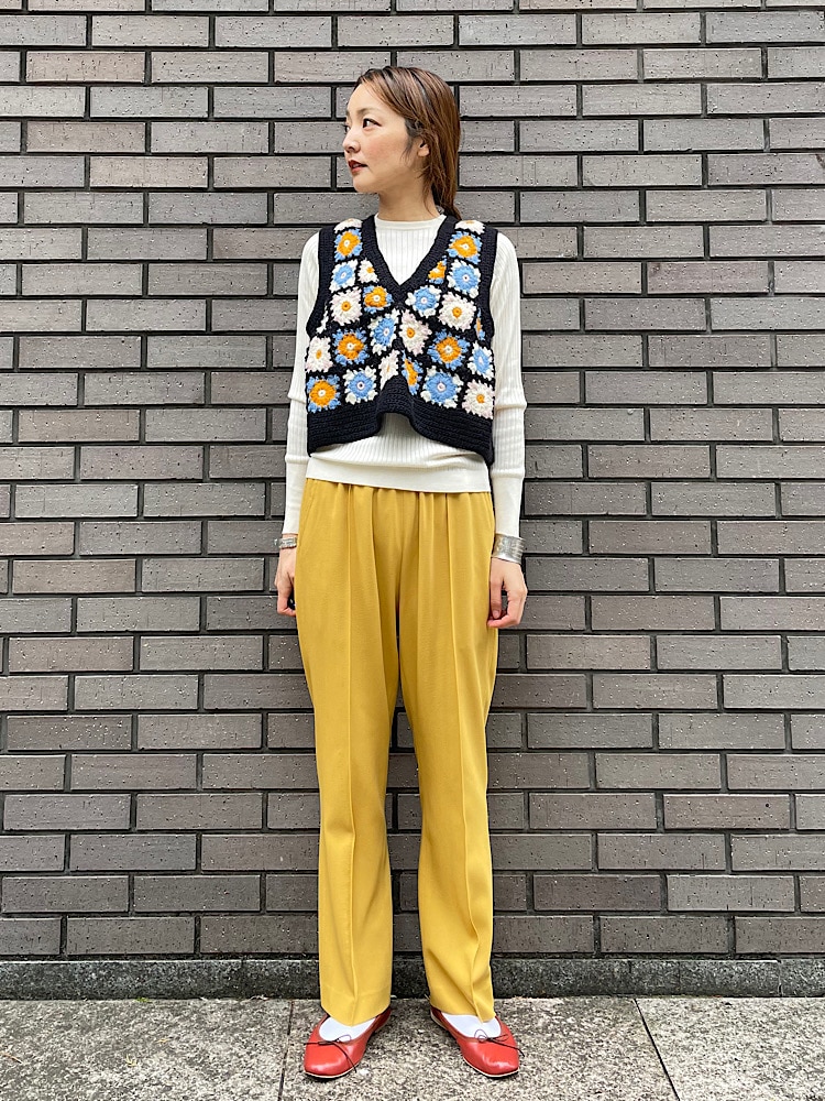 素材感・着心地:ウール素材でやや硬さがある素材感。重さはありません。着丈は短めですが、身幅がゆったりしているのでシャツやワンピースなどと重ねて着用しても可愛いです