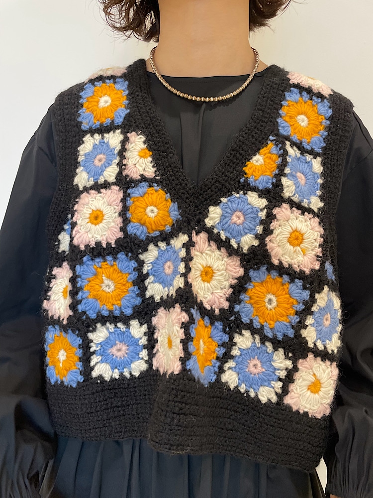クロシェベストを主役にカジュアル見えし過ぎないように綺麗めなアイテムでコーディネートしました!