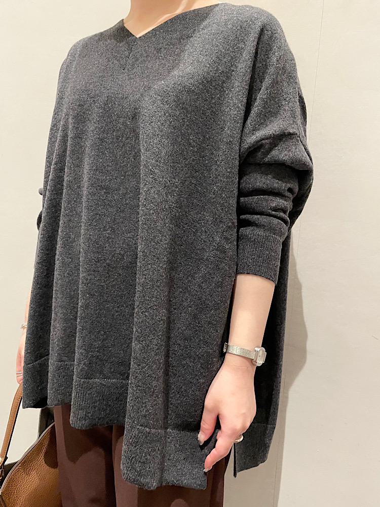 商品紹介:生地も柔らかくちくちくしなかったです。程よくゆとりがあり、落ち感が女性らしいです。また首元のブイネックも深すぎず1枚でも着ていただけます。中にタートルネックをいれてレイヤードしても可愛いです。